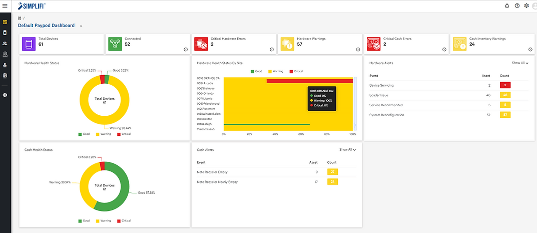 When you choose the Paypod, our partnership doesn’t stop once your checkout is live. We help you monitor your device remotely through our Simplifi, a cloud based enterprise software platform that provides business awareness, management and control of Paypods next generation of connected payment systems.